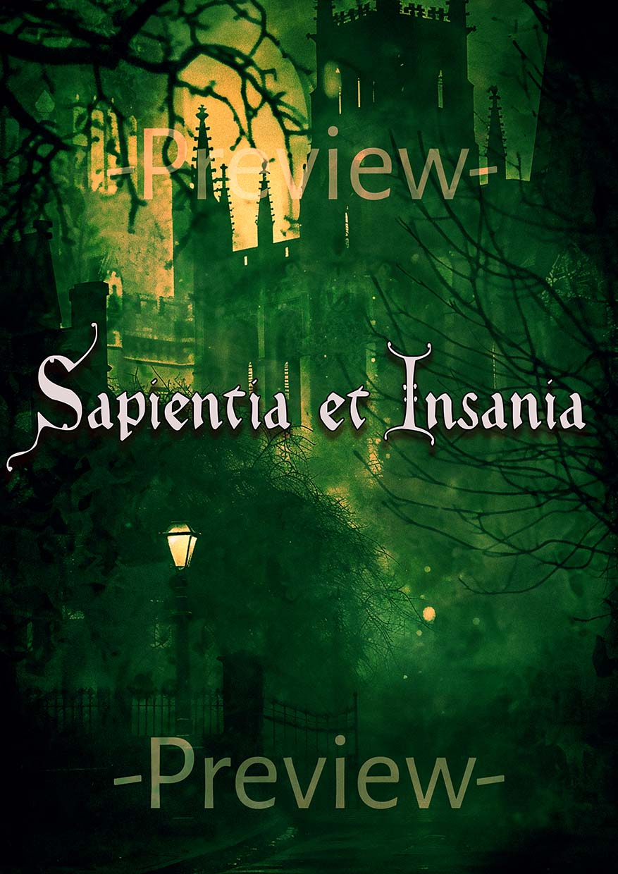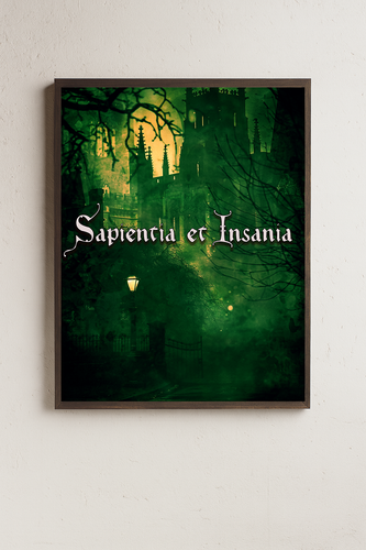 The Sapientia et Insania poster (“Wisdom and Madness”) captures the haunting beauty of a gothic-style university — perfect for lovers of dark fantasy, atmospheric worlds, and scholarly mystique.